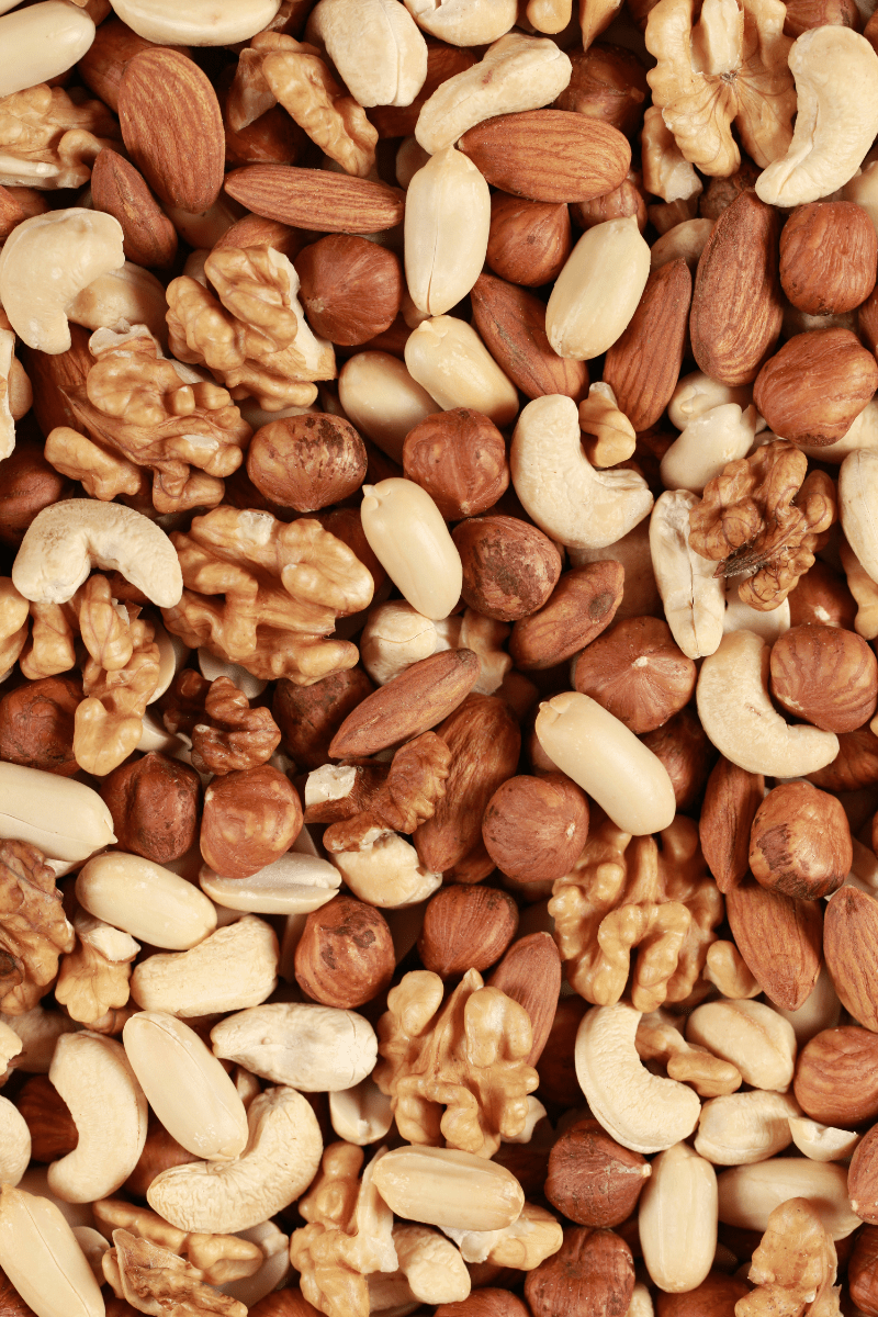 Raw – cashews, almonds, macadamia, brazil nuts, hazelnuts, pecans/walnuts
