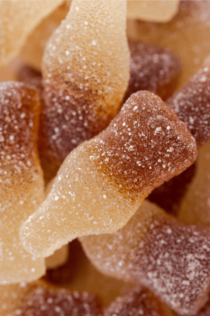 Ingredients: sugar, glucose, gelatin, invert sugar, pectin, citric acid, lactic acid, egg albumen, flavouring, colourants, corn starch, gum arabic, apple concentrate, sulphuric dioxide (preservative).